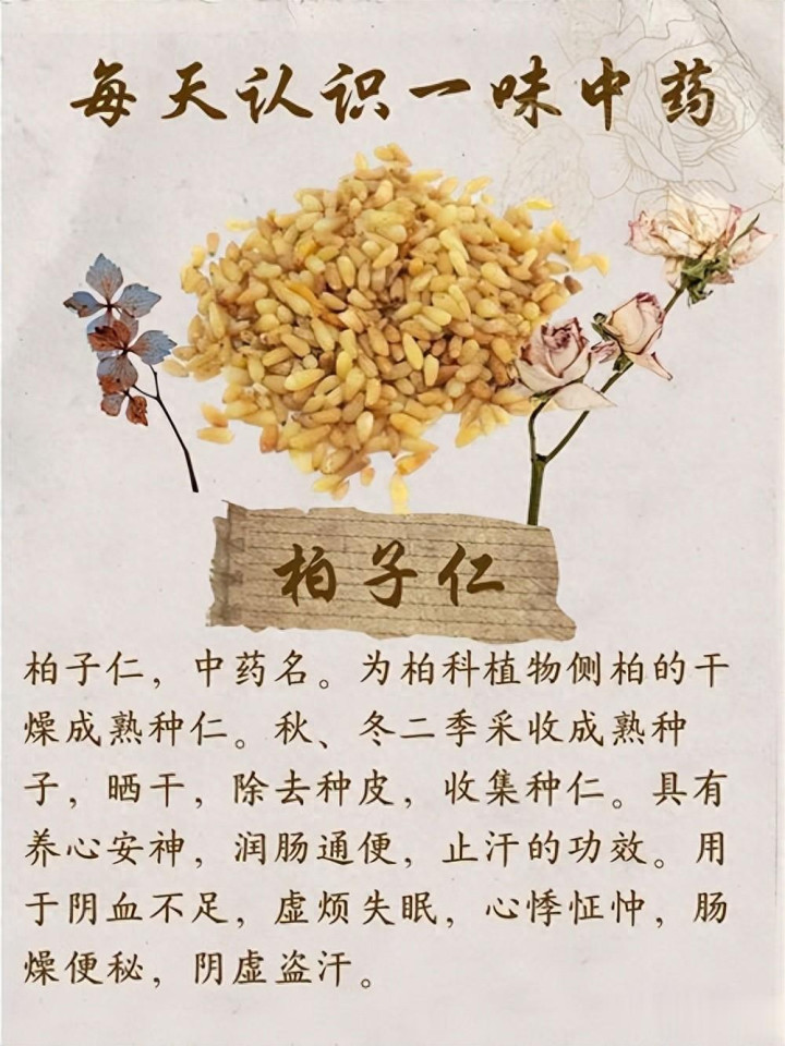 · 养快慰神:针对心阴血亏虚所致的惶恐不安、心悸怔忡、失眠多梦,《名医别录》载其 “疗依稀,虚损吸吸,历节,腰中重痛,益血止汗”,柏子仁甘润能滋养心肾之阴、补益心血,安省心神而不燥,尤其相宜老年及体虚者的虚证失眠;