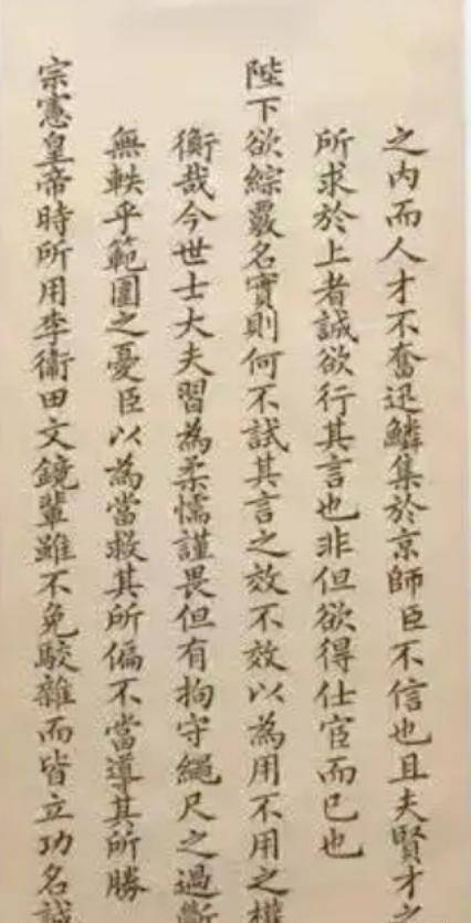 藏于陕西省蒲城县清代考院博物馆的张之洞殿试策,是国度一级文物,既是他才学与目光的见证,更是晚清馆阁体小楷的典范之作,通篇无涓滴涂抹、删改陈迹,既彰显了他塌实的学识功底,更体现了超凡的书道造诣与极致的耐烦。