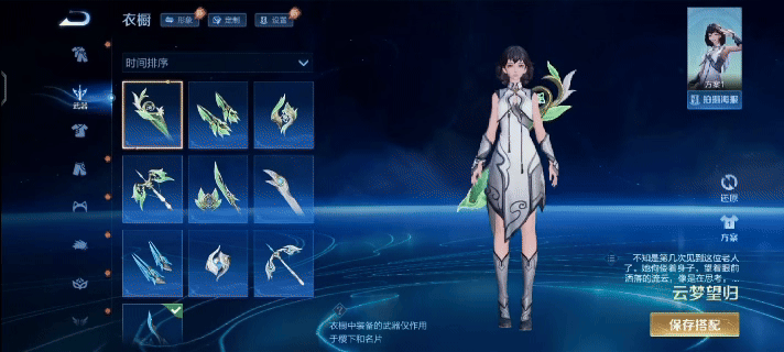 五种刀兵差别为【元流坦克刀兵-云梦止戈】、【元流弓手刀兵-云梦坠流】、【 元流法师刀兵-云梦化灵】、【 元流刺客刀兵-云梦藏锋】、 【元流赞成刀兵-云梦望归】。在游戏的定制界面修改各做事的元流之子刀兵后,局内模子和殊效就会发生变化。
