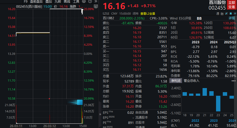 尾盘炸板!百川股份:居品加价仍存不祥情趣